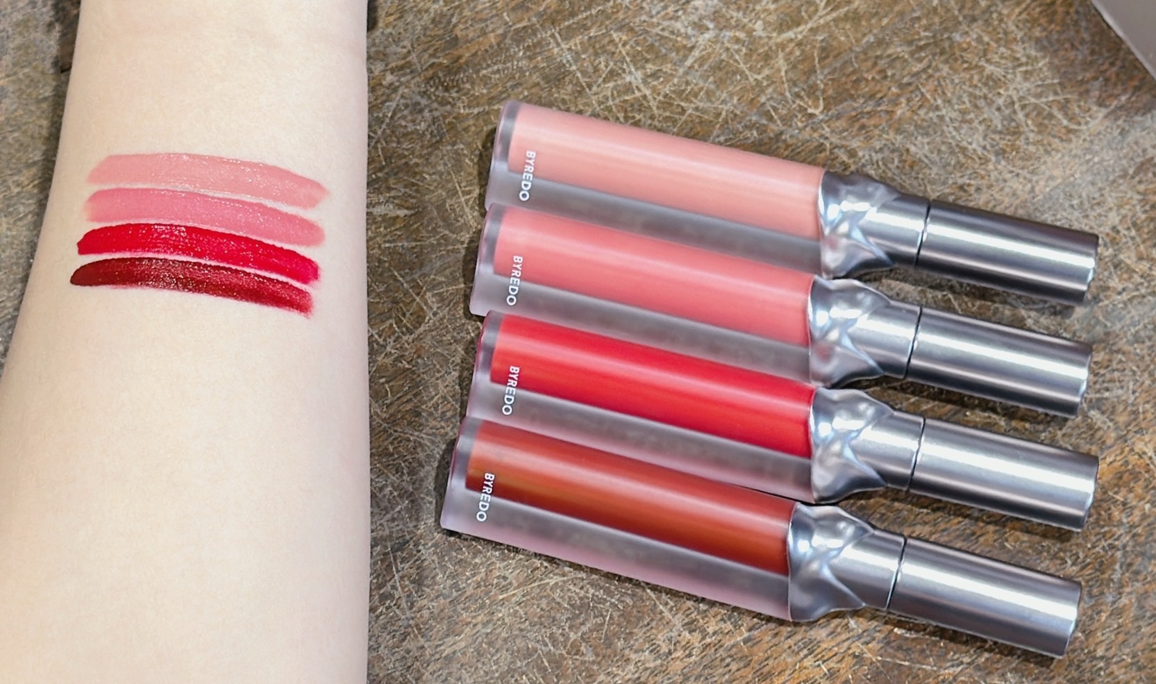 Byredo唇露系列輕盈絲滑,塗抹於唇上如融化奶油慕斯質地,毫無負擔,可以打造自然如雲霧般的絲滑柔焦妝效,同時展現高感官般的顯色度,色彩濃郁且多樣,一抹即可覆蓋原唇色;其保濕的舒適觸感輕盈如空氣般舒適,更具備獨特的純素配方。