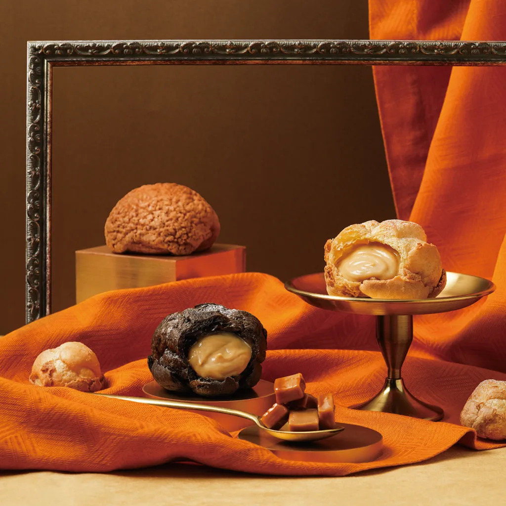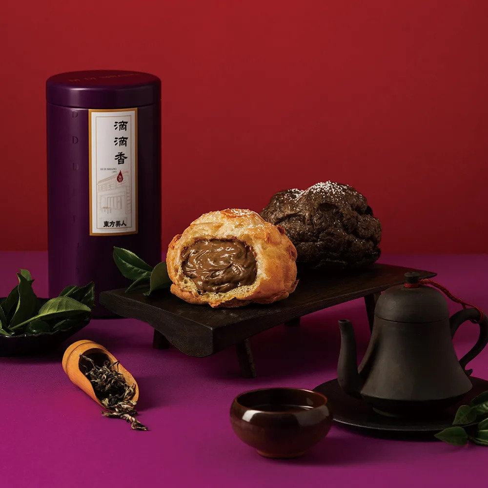 「東方美人茶泡芙」正是選用台灣十大名茶之一的東方美人茶入料,除了濃郁的茶香基底之外,細細品嚐會發現卡士達餡中,還有一股淡淡的花果蜜香,整份吃完也不會覺得太甜膩,是大人系口味的首選!