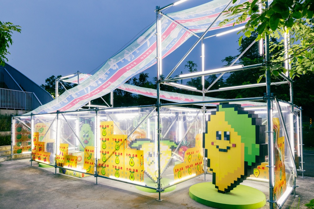 在富有全台最美市場之稱的新化果菜市場展出的《四季美滿,百年開箱》,是由「走路草農/藝團」創作,台南當地的哈密瓜、青皮椪柑、白蓮霧、芒果、鳳梨等蔬果變成藝術元素, 不僅僅是觀看,迷宮裡還設有可以坐下休息的空間,配合市場建築的梯田流線造型,拉近了藝術與民眾的距離。走進這裡,你會感受到臺南四季的滋味,更是這片土地的獨特故事。