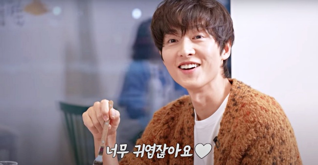 當談到凱蒂的韓語實力時,宋仲基還模仿一段老婆與婆婆的對話,他表示老婆會用非敬語用韓文請婆婆用飯,還不熟練但誠意十足的韓語,讓他光是回想就露出寵溺笑,抬頭狂問工作人員:「不覺得很可愛嗎?」(在你眼裡都可愛吧XD)