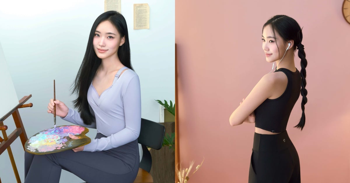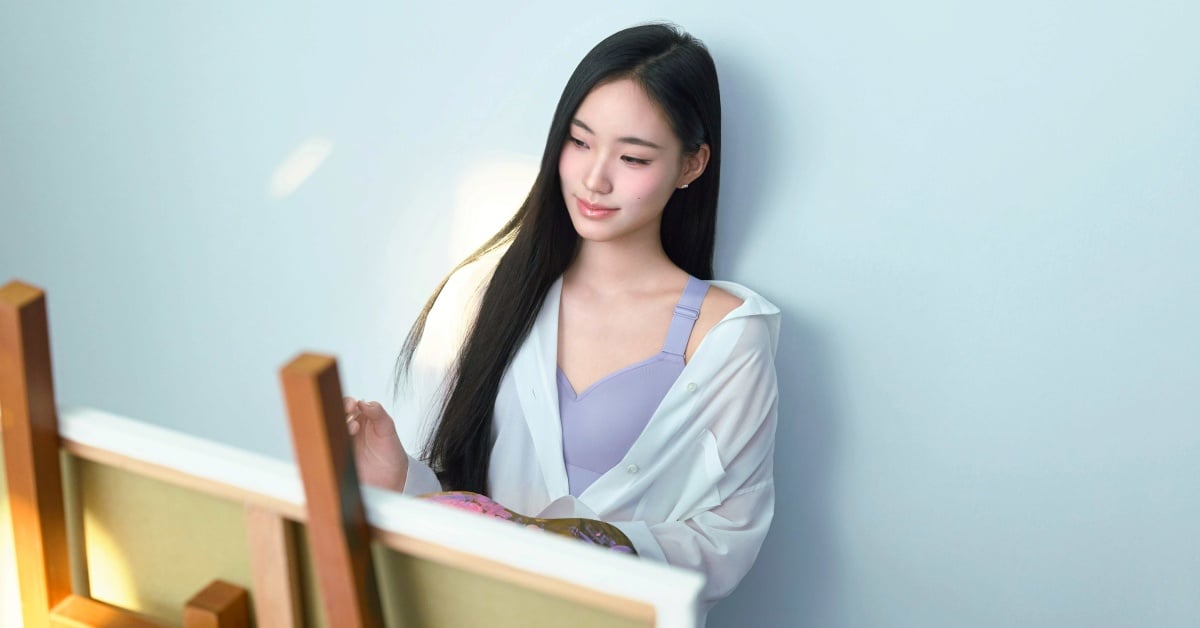 Lily 在畫室裡穿上的,是 高效支撐運動內衣背心、交叉長袖上衣與喇叭長褲 的同色系組合。柔嫩紫搭上石英灰,像清晨陽光灑落在畫布上,靜謐又乾淨,第一眼就讓人覺得「好舒服」。本系列採用中緊度四向彈性布料,能自然包覆身形又不限制肢體延展。運動內衣更以 3D 一體成型罩杯打造高支撐與高透氣,讓妳長時間創作、移動都不受侷限。