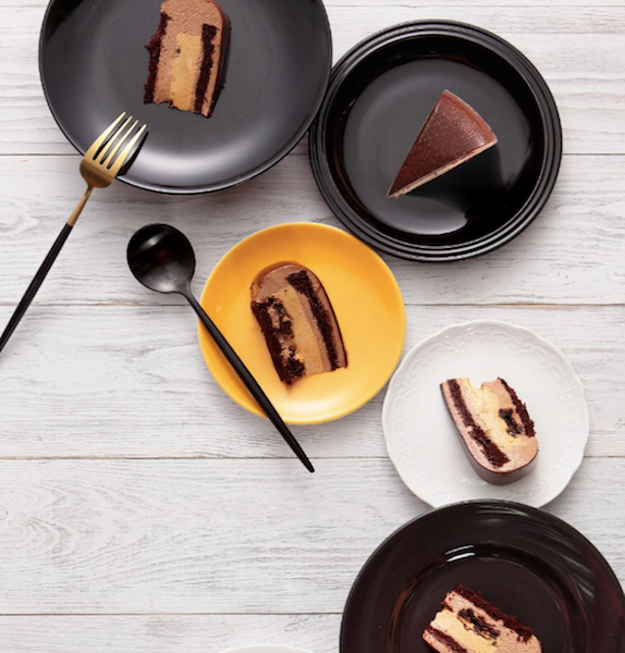 下方的蛋糕體,則是選用54%頂級比利時巧克力為原料,內餡則是濃郁的焦糖甜香的海鹽慕斯、巴芮脆片,吃起來鹹鹹甜甜更上癮,整個吃下來既有層次又驚喜不間斷~