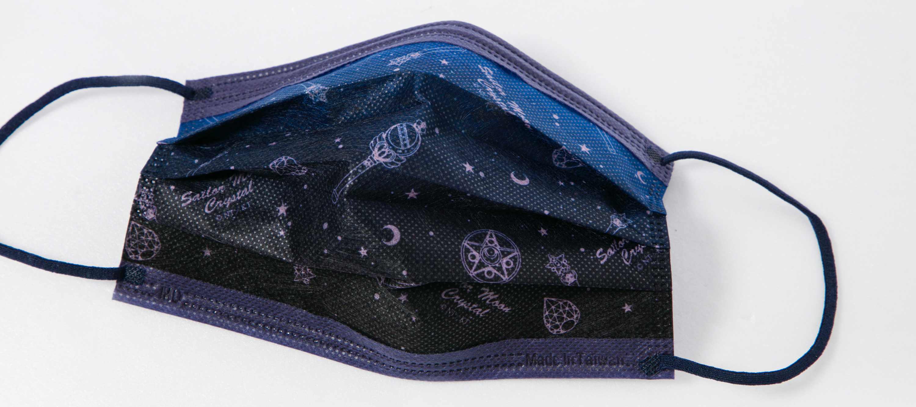 這次推出的美少女戰士漸層星空口罩,在布料上印製滿滿的變身器等符號,搭配黑茶藍漸層布面,在布面上微柔光的色澤反射更顯現精緻的口罩質感,在口罩包裝上除了採用獨立單片式分裝之外,選擇使用掀蓋式美少女戰士盒裝,讓收納更加便利。