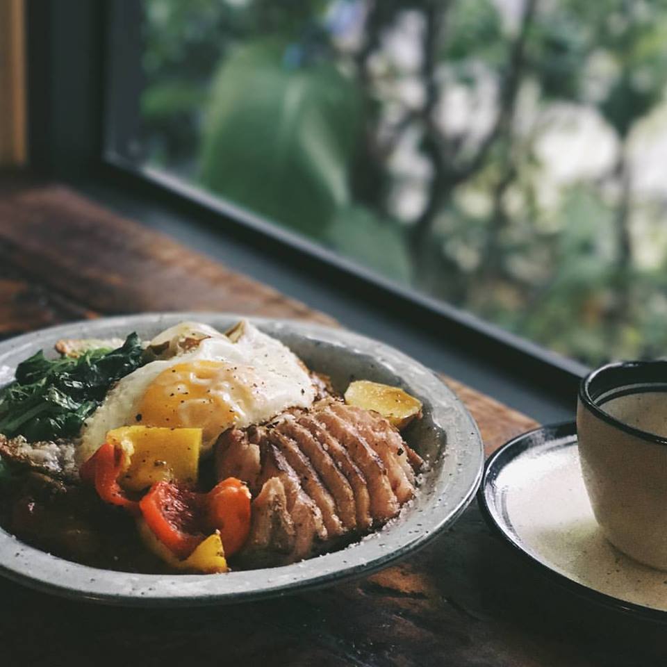 接著「森氏」是位於永安市場站步行三分鐘就可抵達的咖啡廳,門口佈置是小森林系感,女孩們應該會忍不住多拍個幾張。(笑)這裡不只手沖單品咖啡頗受好評,簡餐類也推薦,是個適合飽餐一頓的好去處。