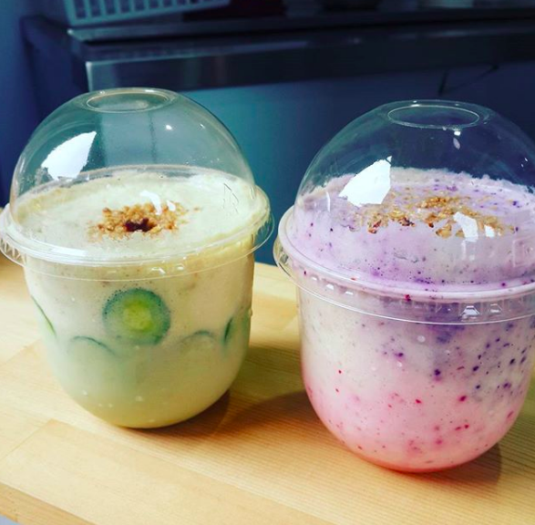 最後一間,來杯濃醇香的豆漿作結吧!店面門口簡潔帶點小清新感,販售的是健康的手作豆製品。但這家的豆漿跟想像中很不一樣,還會結合當季水果,變身為女孩最愛的夢幻豆漿果昔,就連純豆漿也是同樣好喝又有飽足感呦!