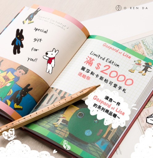 限量滿額禮!ORENDA官方網路商店滿2000再送麗莎和卡斯柏可愛布手札(市值$350)。
