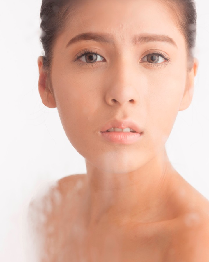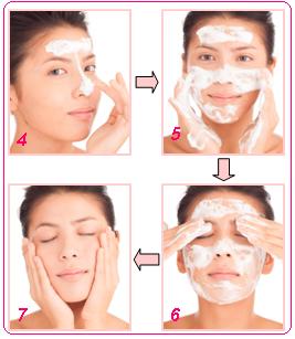 最後,快速地用流動的清水,徹底沖洗臉部的每個角落,特別是臉部輪廓處要注意。