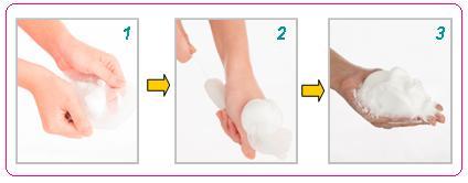 如果不是泡沫型潔顏產品,首先就是利用起泡網搓出綿密泡沫。將洗面乳擠在網子上加以搓揉,就會製造少量的泡沫。