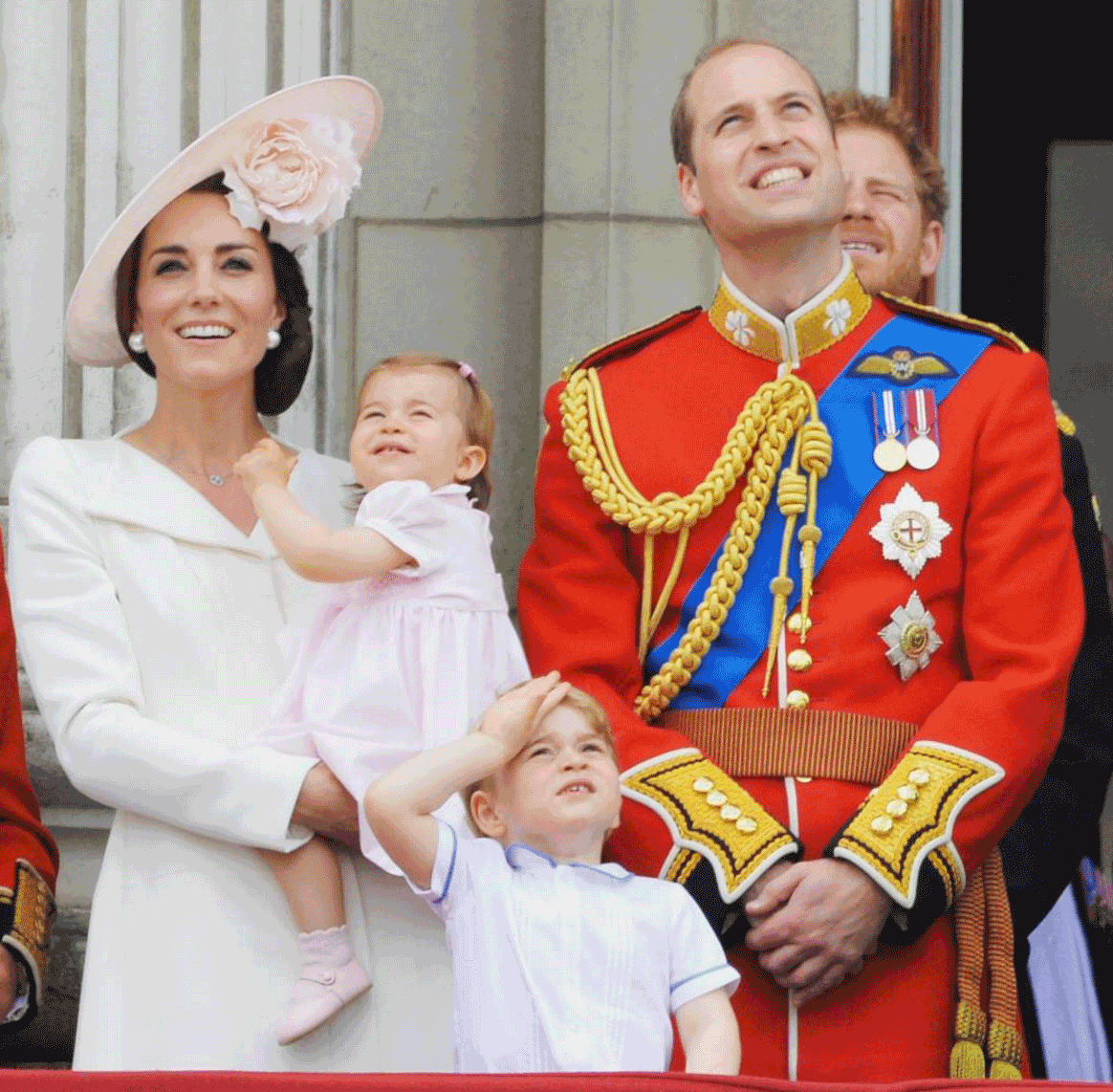 喬治小王子穿著粉藍色系,呼應爸爸威廉王子的正裝;媽媽凱特王妃和妹妹夏洛特公主則穿著粉紅色系,顯出高雅氣質,這種選用粉嫩對比,卻不過於刺眼的配色,讓人感覺亮眼卻也溫馨。