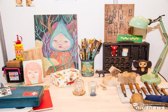 當妞編輯走近這個攤位時,不僅可以感受到一股濃濃的慵懶風,還恰巧遇到了很可愛的設計師團隊,雖然他們很害羞地表示自己的中文不好,但還是散發出了跟長頸鹿先生一樣讓人感覺很親切的氣息,當問到他們在本次展覽中喜歡的設計師時,也大力推薦說:「我很喜歡日本的めんトリ(懶得鳥你)!裡面的角色全都是瘋狂的鳥,長期都是暴走的狀態。可能我自己有飼養鸚鵡,所以也覺得非常特別!!」