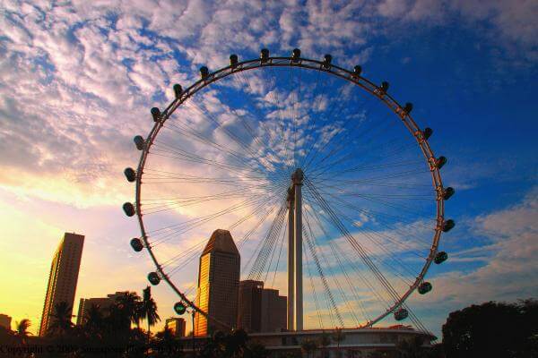 摩天輪從小到大都是許多少女心中童心未泯的美夢。到了新加坡,這裡知名的「新加坡摩天觀景輪」高達165米,是亞洲最大的巨型觀景輪,豈有不搭的道理呢?不管你白天還是晚上到此,景觀艙內360度觀景視角都有不同迷人風采,妞編輯最推薦大家傍晚過來搭了,若是想拍拍意境美照的妞妞們,就可以趁此和美麗落日合影幾張啦~