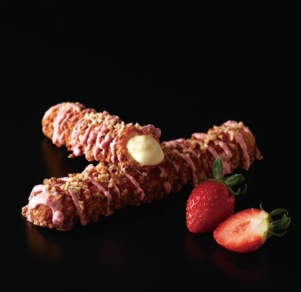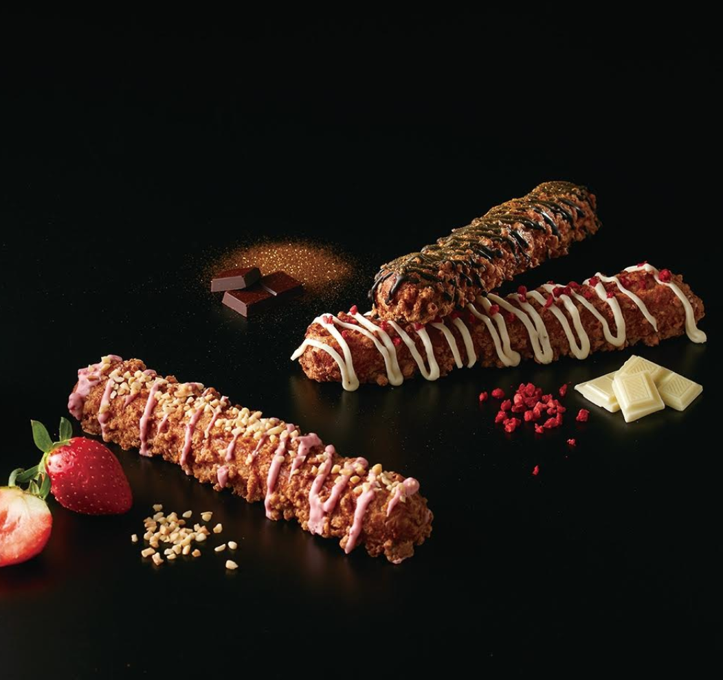 最後一款「杏仁莓果」為台灣獨家研發、全球首發口味,將先前冬季大熱賣的莓果巧可加以變化,酸甜的草莓覆盆子巧克力醬淋在香酥脆的棒棒泡芙上,最後撒上杏仁粒,絕對是莓果控必吃口味!