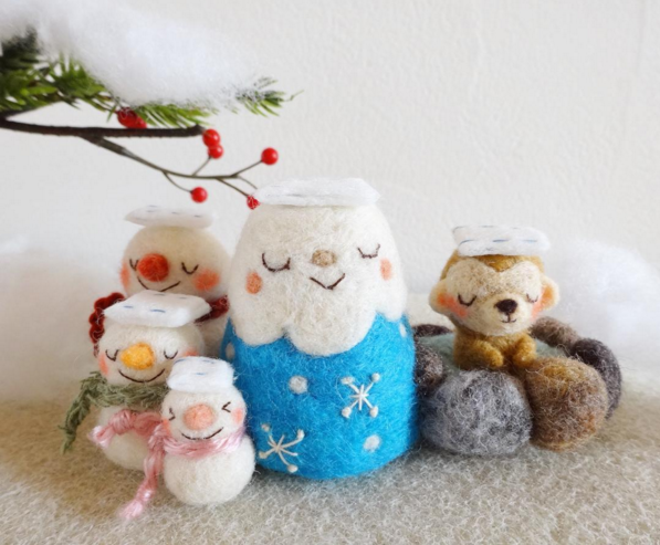 首見Q版冬季羊毛氈富士山!旁邊還有猴子一臉幸福的在泡湯呢!