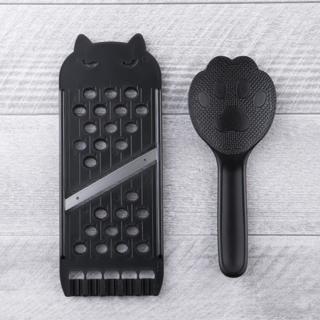 還有Q萌的貓手掌飯匙,盛飯的時候讓人不禁聯想到貓咪正在扒飯的模樣啊~而料理必備的砧板與菜刀也必須入手,刀片上小貓開心地邊走邊留下腳印讓人直呼卡哇伊,握柄使用耐熱的塑膠材質,不僅能避免不小心燙傷的意外,還能減輕整把刀體的重量,非常適合女孩使用!此外,砧板的部分還有間距設計,不怕切出來的東西大小不一,這個設計實在很貼心~
