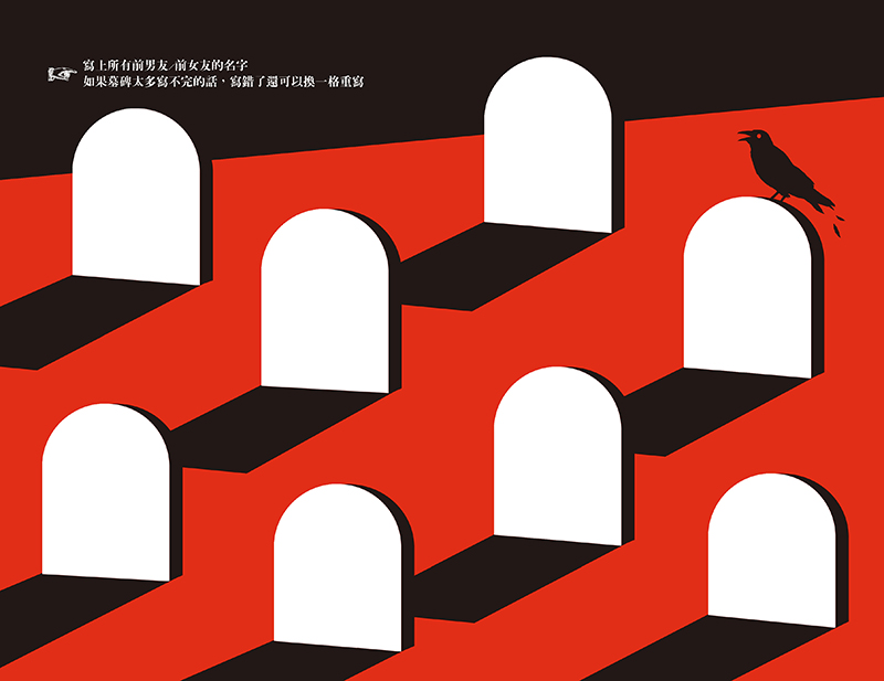 最後,在墓碑上寫下他/她的名字,將他狠狠地掩埋起來,妳可以大哭、可以大吼,在這時候就將心中的所有不愉快宣洩出來吧!