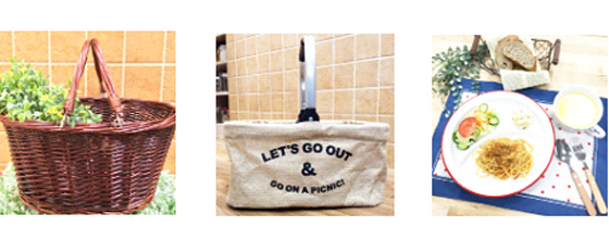 三款附有提把的野餐籃,野餐籃中定番款的柳製編織籃,附有內襯布,帶有復古感設計,增加整體甜美度;另一款擁有大容量空間,可放各式食材及餐具,讓野餐滿腹而歸;最後是麻質材質收納籃,簡約自然,方便收納。消費者可根據出遊的穿著打扮來搭配使用。另外,台灣限定販售的各式編織收納籃,售價介於50元~250元間,除了戶外野餐時,做為擺盤的使用外,還可用於家中收納,一舉數得。
