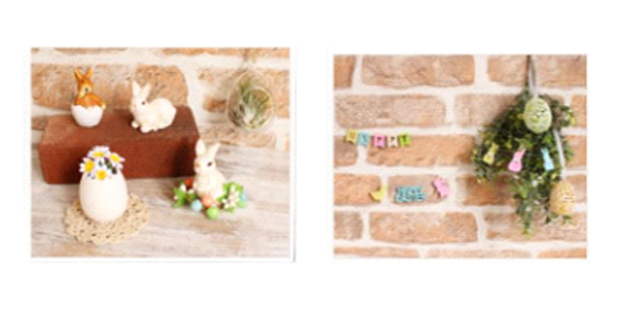 ‧擺飾(蛋中兔/坐姿兔/站立兔)/ 迷你蛋形瓶/彩色堅果花圈/ 蛋形懸掛式花瓶 各50元 |