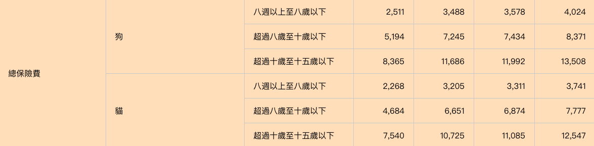 投保年齡:首次投保年齡為8週(含)以上至未滿10歲6個月,續保可至未滿15歲六個月。
