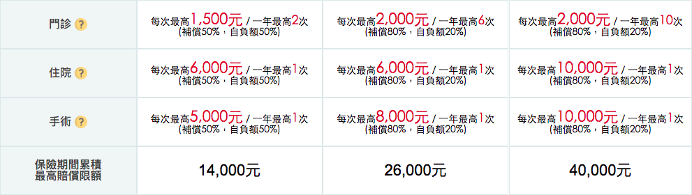 寄宿費用:方案一不保在內,其餘方案每日2,000元(被保險人住院才可申請)