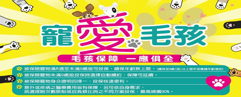 投保年齡:8週(含)以上至8歲,如續保可至12歲