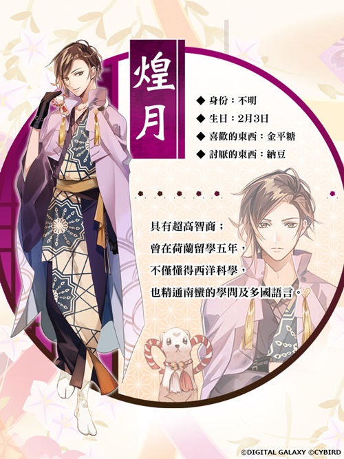而日前宣布即將登上雙平台的女性向戀愛手機遊戲《新章美男大奧 逆後宮浪漫譚》中,更是不科學的出現絕頂聰明天才型新男主角「煌月」,在大奧美男輩出的逆後宮中,究竟會造成什麼樣的衝擊呢?話不多說,就讓我們一起來瞧瞧官方釋出的這位新男色,與最新遊戲宣傳影片吧!