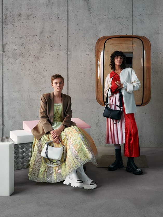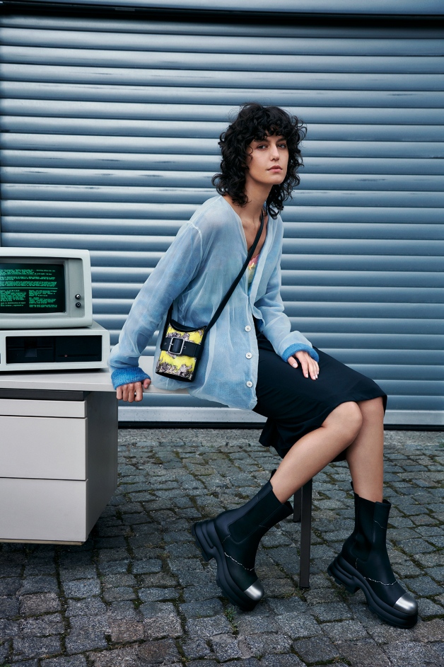 聯名包款則融合 90 年代街頭和未來主義風格: Jules 真皮鍊條肩背包的極簡包體線條飾以霧黑消光的鍊條增添巧思,讓造型簡約的包款瞬間充滿個性,使整體造型更加酷帥吸睛;橢圓形剪裁的 Jules 真皮腰帶釦水桶包跳脫傳統拉繩的磁釦開袋設計,同樣搭配可拆卸的鍊條裝飾,彰顯出叛逆不羈的龐克精神,成為闡述自身風格的標誌性單品。