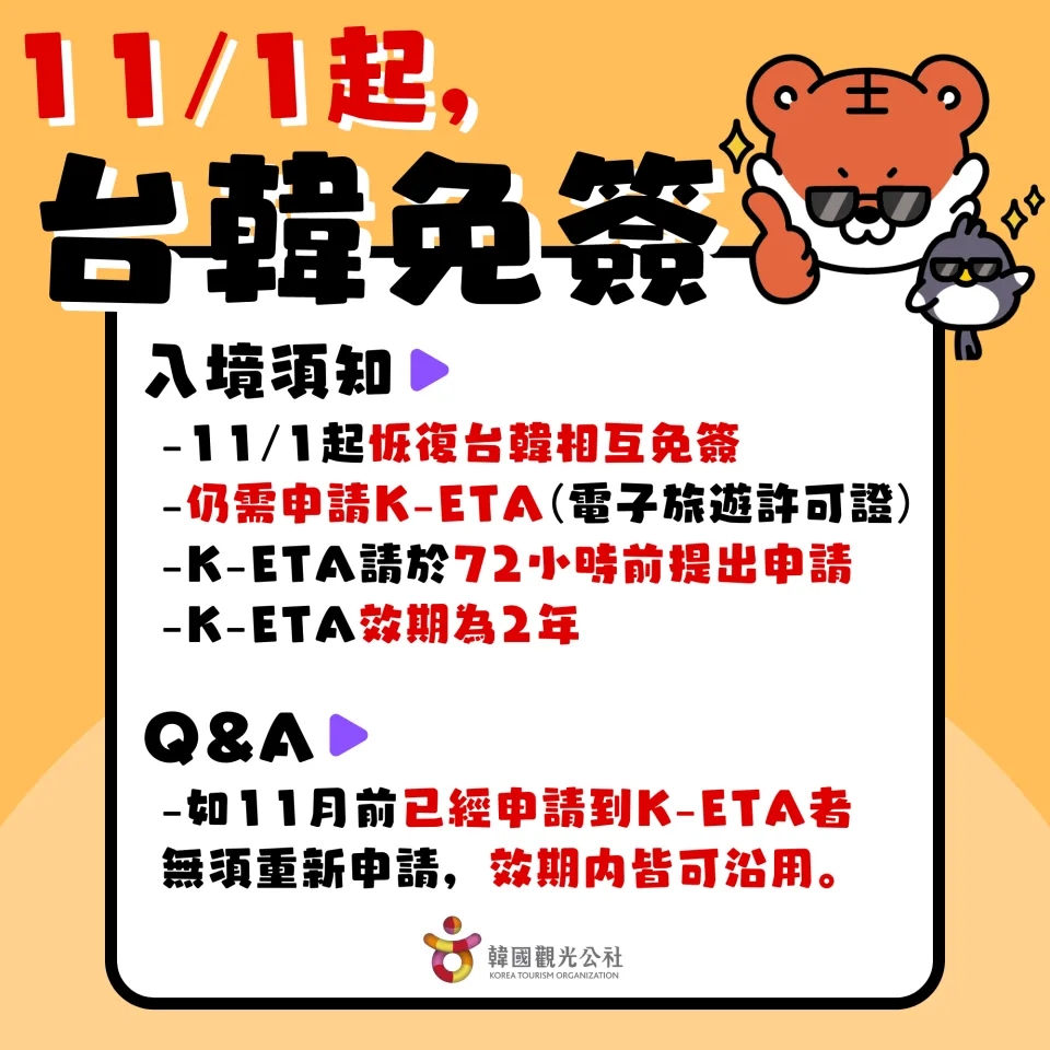 妞妞們尖叫聲!韓國政府在今天(10/19)宣布包含台灣在內的8個國家,11/1起可以免簽證入境韓國啦!詳細的入境政策和須知就跟著妞編輯一起看下去吧!