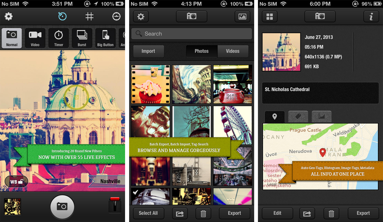 《Zitrr Camera》有6種專業取景圖,就算是攝影新手也可以輕鬆拍出好照片,還有超過30種特效跟濾鏡,拍攝完成後還可以增加地點、日期與相片說明,來為你的攝影之旅記錄過程吧!