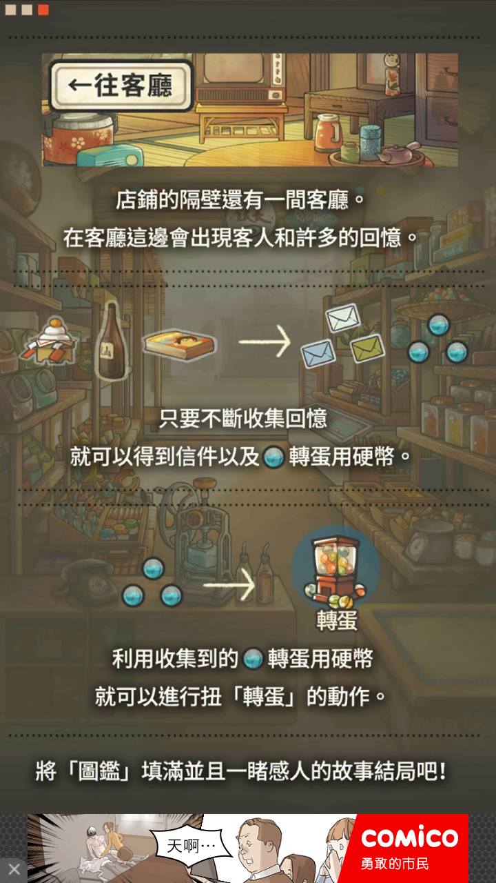 也許是因為這個遊戲充滿了復古懷舊的氛圍,有許多人玩了直呼「有洋蔥」呢!隨著店鋪的經營,老奶奶也會得到回憶或是信件這類的物件,這些物品都跟結局有關聯喔!想要回到令人懷念的孩提時刻嗎?趕快下載來玩玩看吧!