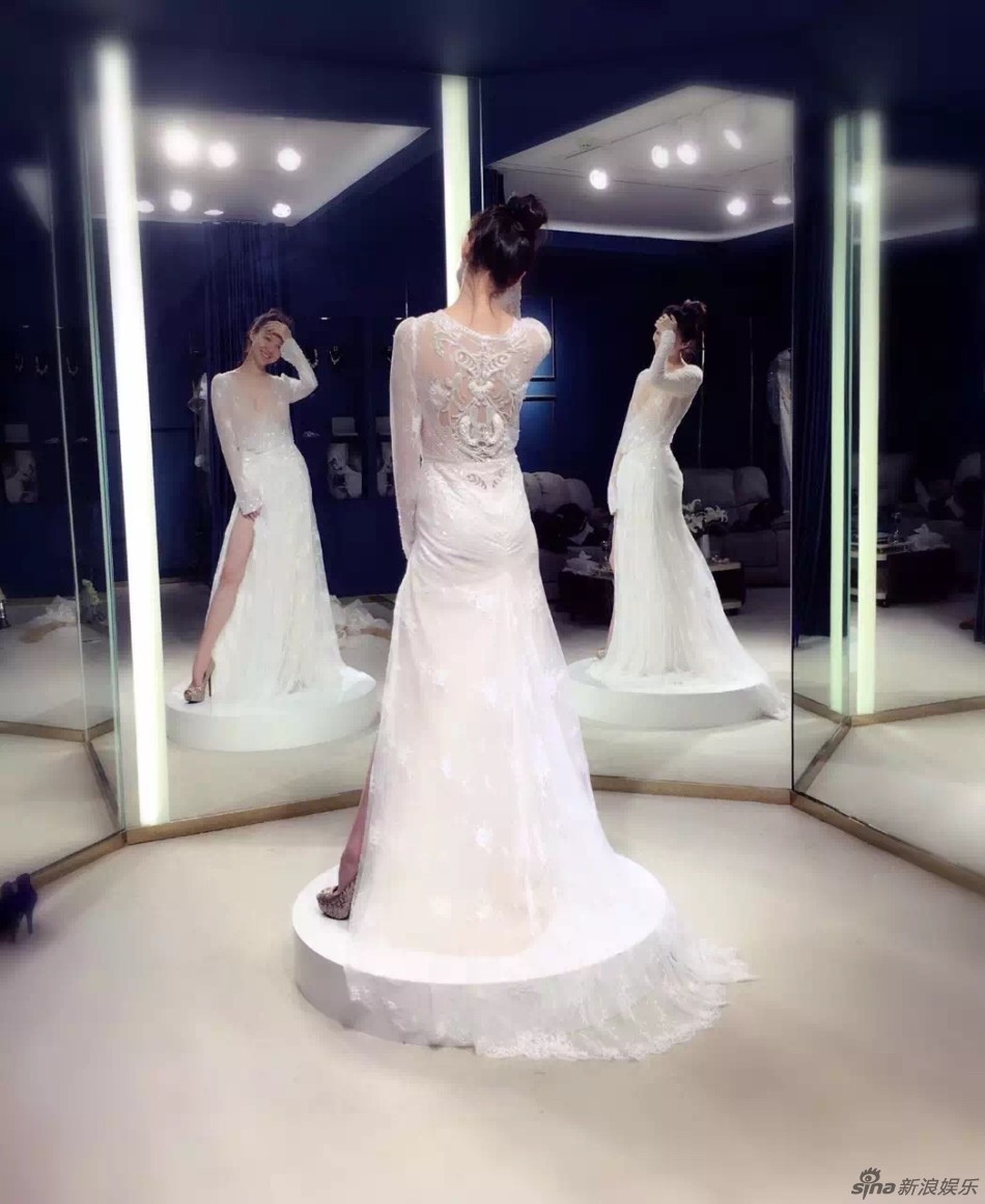 小倆口在布滿白玫瑰的透明玻璃教堂拍攝,韓雯雯至少換穿了2套婚紗。