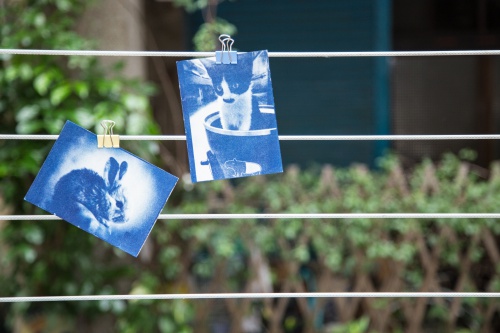 藍曬圖的基本配備有:1張A5大小的水彩紙、1把小刷子、小紙碟、2張底片和壓克力板、2罐感光液以及塑膠滴管。可以提供自己喜歡的照片給工作室,它會事先幫你處理成底片喔!