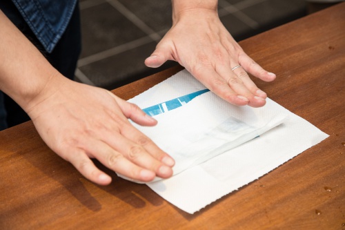 接著將紙張放入兩片壓克力板之中,並用紙膠帶將四邊封起來。記住,黏得緊不緊攸關顯影的效果喔,因為要將底片複印到紙張上。