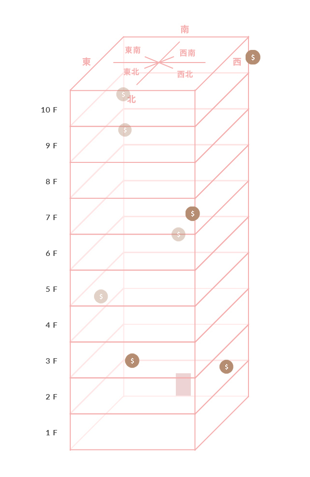 5樓、10樓財位:東方、東南方