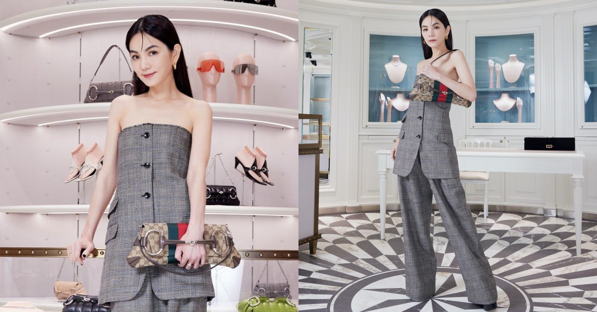 Ella近期以霸氣的姊姊形象和搞笑的反轉性格收穫了不少人的喜愛!一身帥氣平口格紋套裝的她依舊不失活潑大方的個性,一登場就是氣氛擔當~要開玩笑也要會穿搭!Ella挑選了GUCCI老花款的HORSEBIT CHAIN 馬銜鏈包,包包的多重花色配置就好像Ella的演藝生涯般多采多姿又風格多變!
