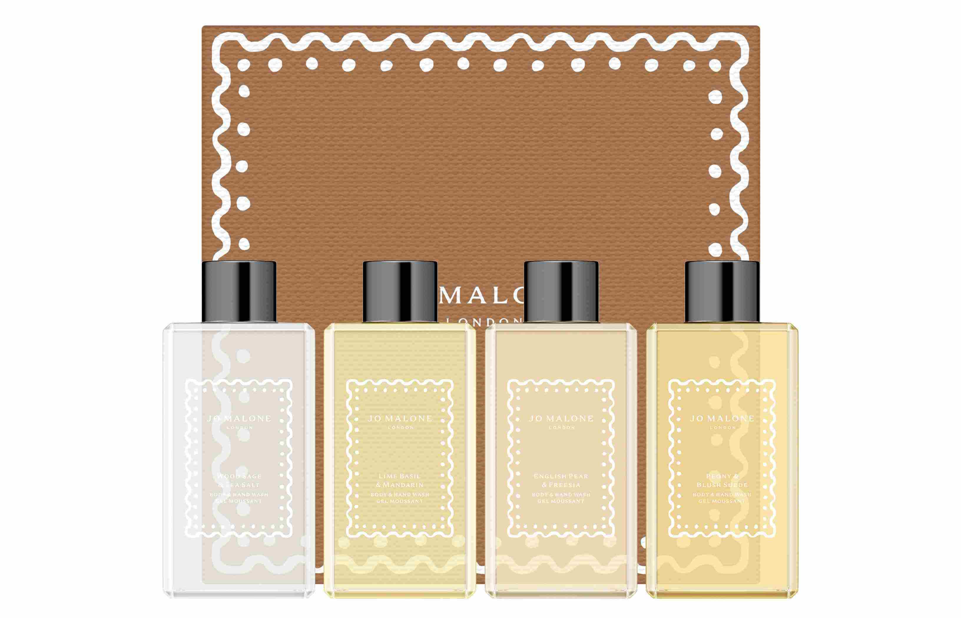 這組合收到禮物會很開心!今年新登場的「童話薑餅聖誕明星潔淨香氛禮盒」,特別收入四款明星香氣潔膚露,包含牡丹與嫣紅麂絨,