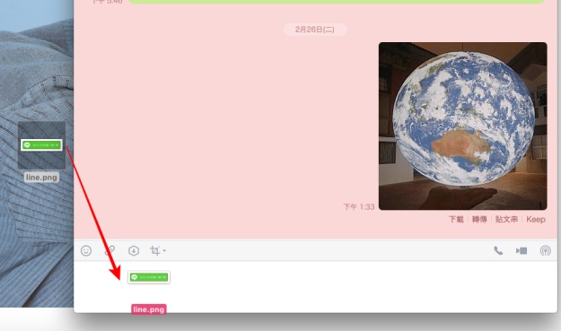 另外也補充一個已上線許久的功能,如果要將圖片、影音、檔案或圖片傳給朋友,同樣也可直接拖曳傳送哦。