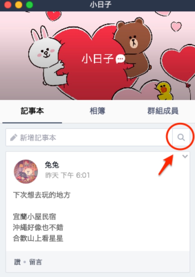 現在除了聊天室內支援「搜尋關鍵字」之外,筆記本也支援這個功能囉!要找訊息就利用這個功能吧~(笑)