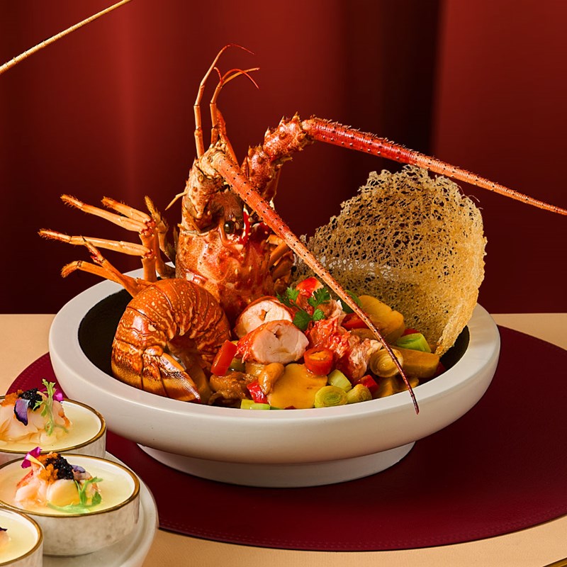 享鴨金絲龍蝦球佐青檸幕斯融合西式手法,增添奢華感,還有火焰XO醬龍蝦,炙燒橙酒打造華麗火焰秀,極富視覺享受