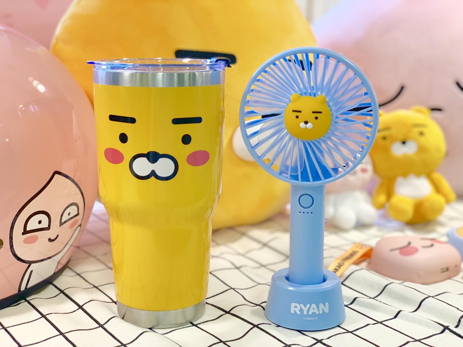 其中妞編輯的pick是涼夏必備的Ryan手持風扇Kakao Friends酷繽杯!淺藍色的風扇搭上可愛的Ryan,三段風速功能再也不用擔心艷陽烈日~酷繽杯則是印上了滿版萊恩,不管是在辦公室使用或是當作隨身環保杯都很適合♡