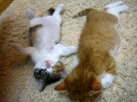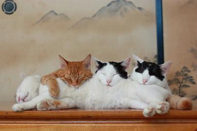 世上還有哪裡比同伴毛茸茸的肚肉更好躺?看三顆貓頭排排睡得好不安詳〜