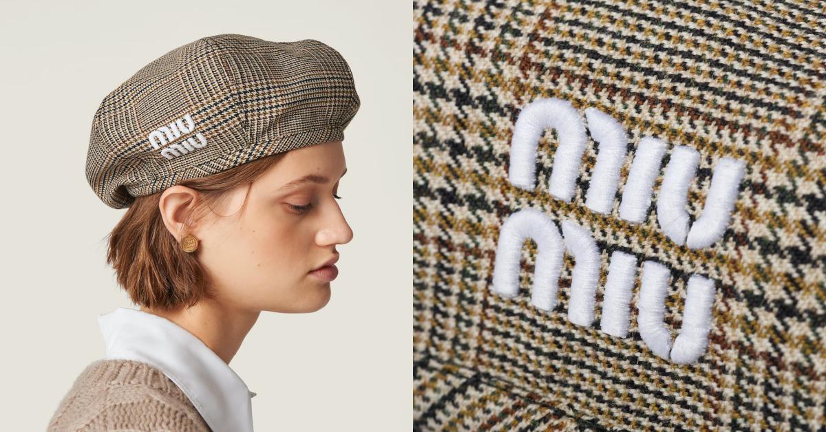 MIUMIU在今年春天捎來一頂具有英倫風格的貝雷帽!這款精緻的威爾斯格紋羊毛帽採用貝雷帽版型設計,並結合經典男士服裝圖案來和MIUMIU的刺繡標誌搭配,和麻花毛衣搭配更顯復古可愛!