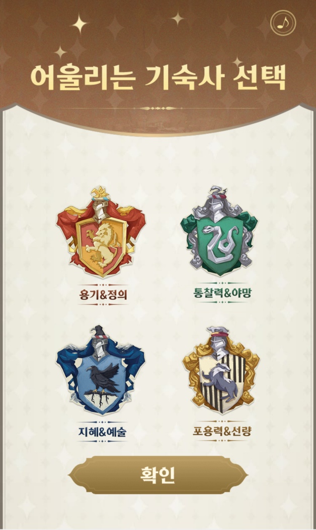 第二步「四大學院」,可依妞妞們個人喜好,選擇充滿勇氣正義的「葛來分多」具有洞察力和慾望的「史萊哲林」智慧和藝術的「雷文克勞」,還是寬容和善良的「赫夫帕夫」