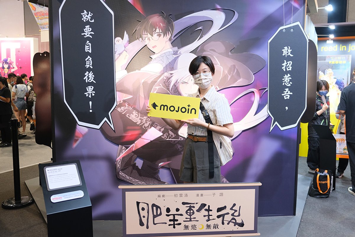 子詡老師特別來漫博現場看《肥羊重生後:無慾·無敵》拍照裝置(圖/MOJOIN提供)