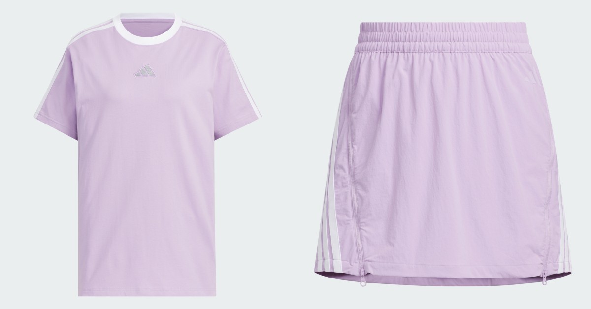 薰衣草紫、寶寶藍為此次adidas舞動系列的亮點配色,在基礎黑白色調之外提供別樣的甜美少女氣息。版型採用今夏持續延燒的「A字穿搭」趨勢,藉由短版合身的上衣搭配寬鬆下身輪廓,創造高腰線的長腿比例。全新三線錐形褲以搶眼的三線元素作為設計重點,落地線條從側邊一路向前延伸,不僅修飾女生最在意的臀腿輪廓,更在視覺上創造收窄效果。寶寶藍三線錐形褲則為清新少女設計,褲管上可拆卸的蝴蝶結綁帶可隨心搭配,完美詮釋可愛與俐落的雙重魅力!