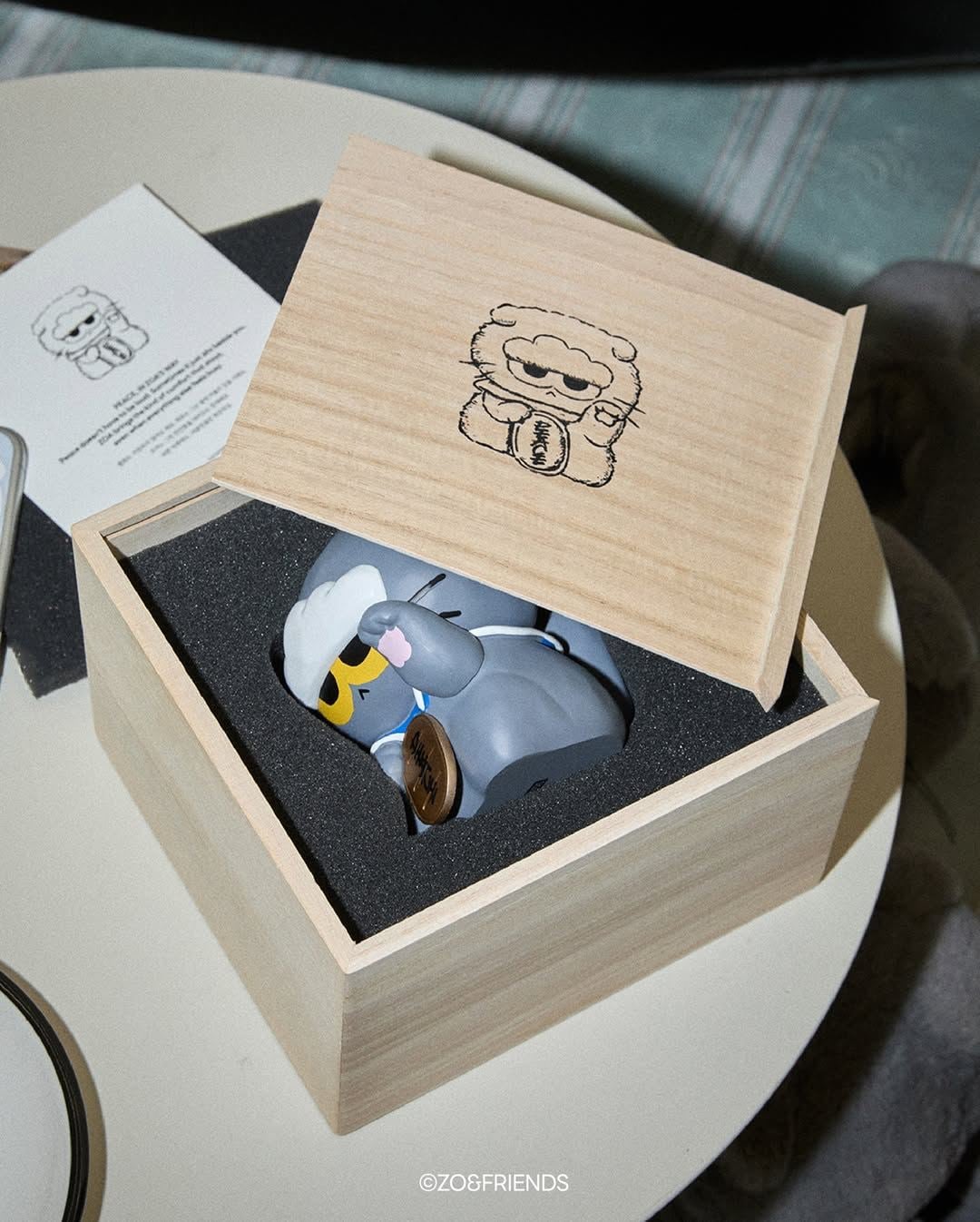 擁有超強吸「金」體質的ZOA,真的太適合當招財貓了!裝在精緻的木盒,上面還刻有ZOA圖案,ZOA手上抱著金色牌子,上面還有權志龍手寫的PEACE。每人限購 1 個