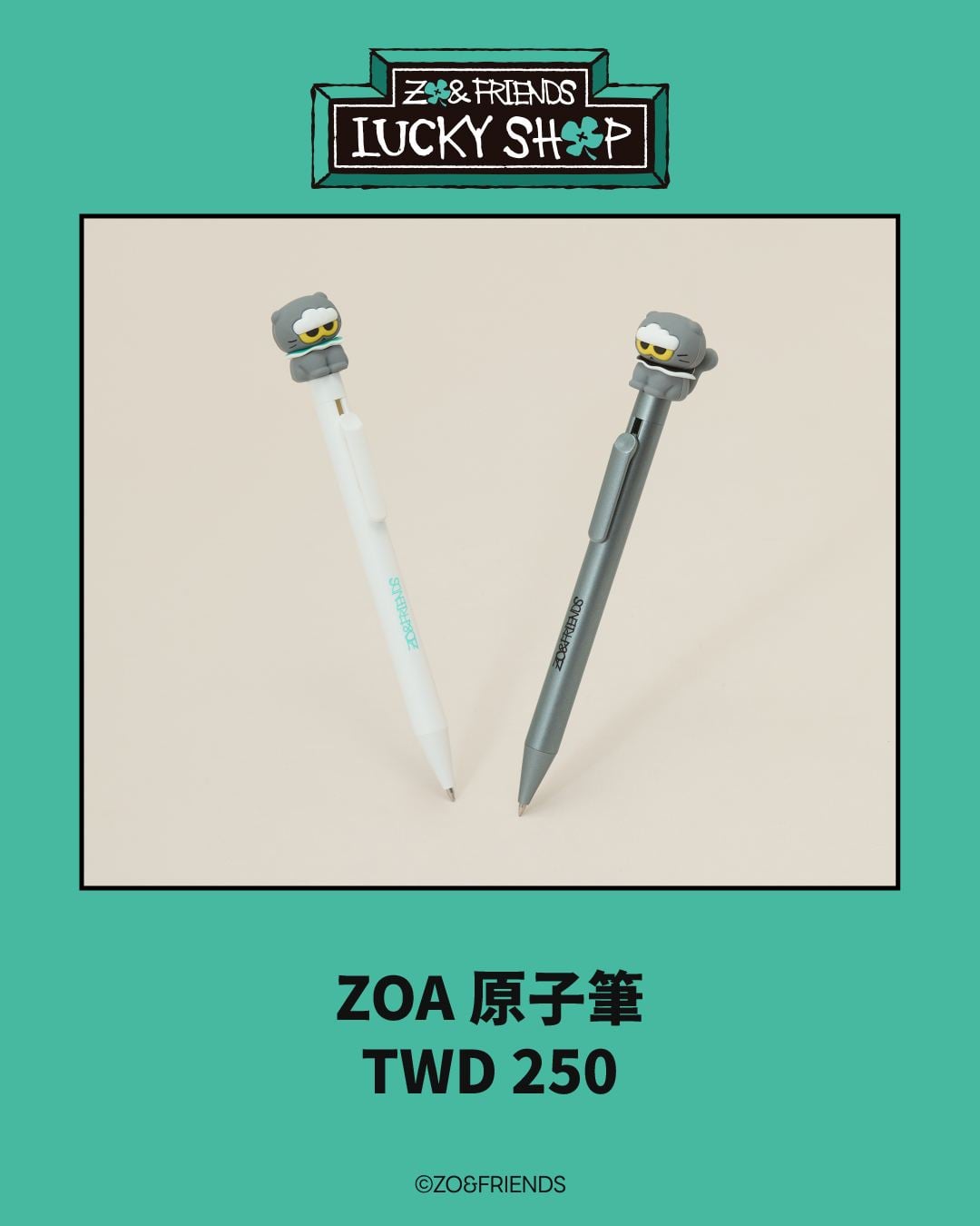 文具控要收!灰與白兩色原子筆,最上面還有一整隻立體ZOA公仔裝飾,細節很精緻,每次寫字時都被療癒一波,擺在桌上還能讓沉悶的工作日常注入點小趣味。每人每款限購 3 個