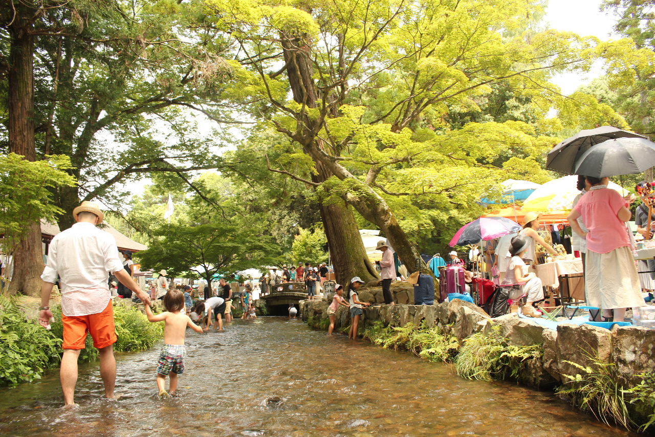 夏天時,上賀茂神社旁邊的小川非常清涼,再加上大樹的遮蔭,可以看到很多小孩在川裡玩水,十分適合避暑。