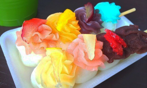 「蔵家」原本其實是賣炒麵的小店,最近在夏季推出了「戀小町糰子」系列,因為繽紛的色彩和超華麗的水果食材,讓少女們趨之若鶩,來到昭和横丁都一定要買一串來打卡才行!