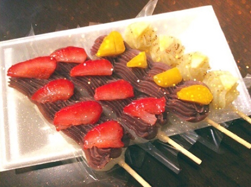 各式各樣的水果與果醬的搭配組合,一下子就讓原本平白無奇的糰子變身超夢幻的甜點,只能說店家真是太有創意與生意頭腦了,因為不管好不好吃,賣相就已經贏一半了啊!(而且價格也不貴耶)