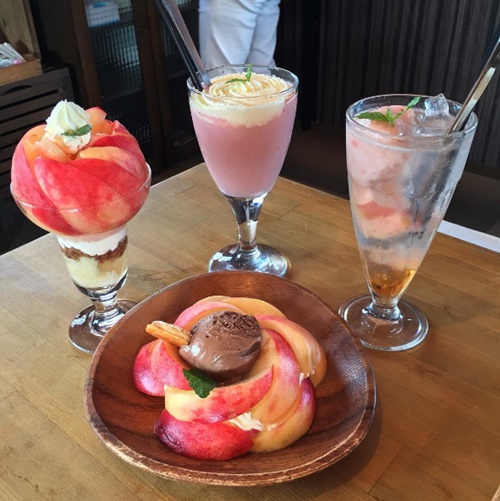 自2009年開始營業的桃の家,每年都會在夏季推出期間限定的咖啡店。因為店面位於盛產桃子、葡萄、李子而聞名的山梨市,所以咖啡館提供的甜點都以水果主要的食材喔!